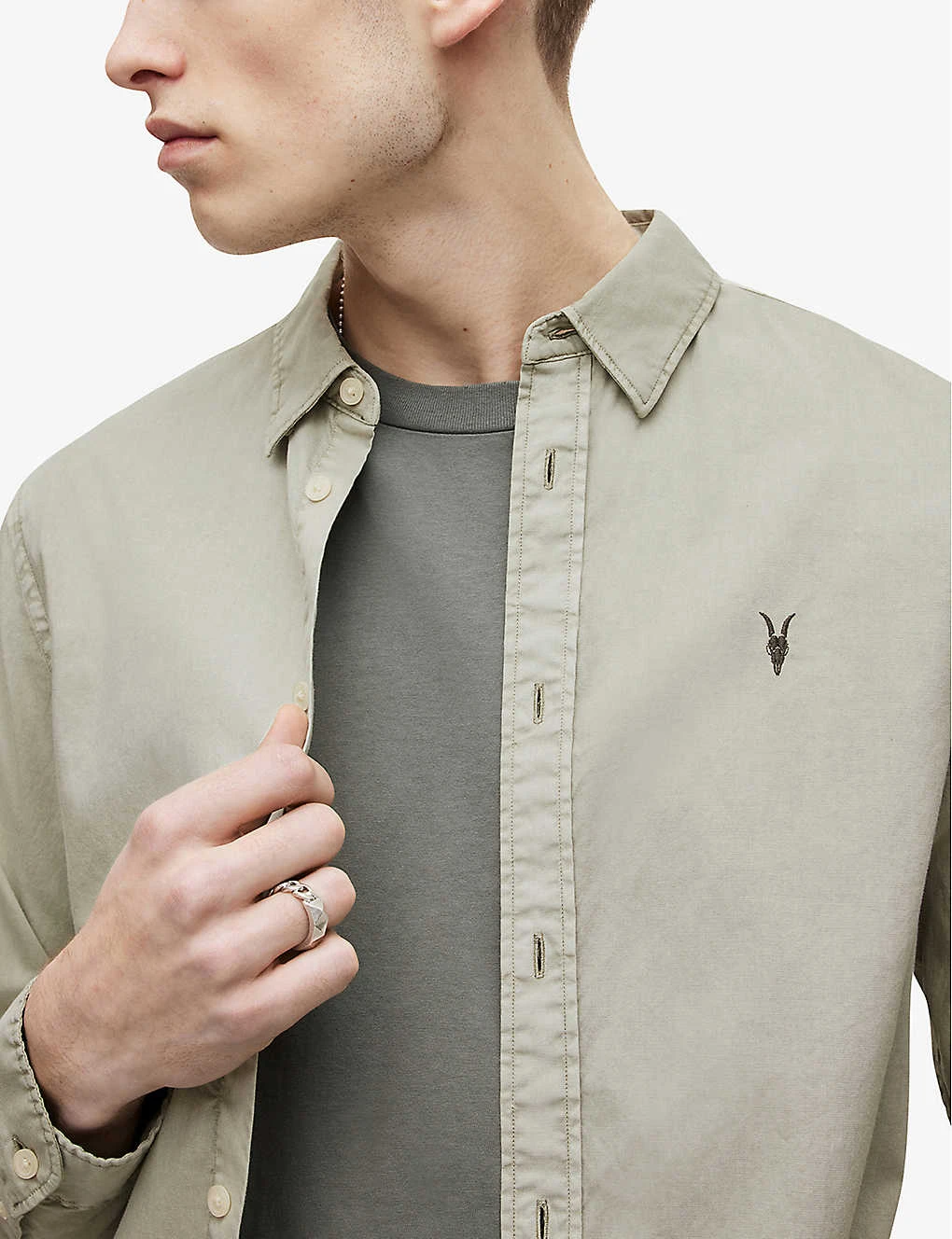 Be the first to review “AllSaints Hawthorne Ramskull-embroidered Regular-fit Stretch-organic Cotton Shirt” Cancel reply