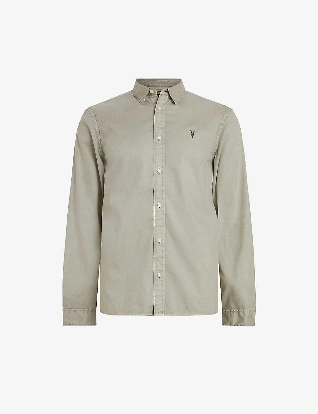 AllSaints Hawthorne Ramskull-embroidered Regular-fit Stretch-organic Cotton Shirt