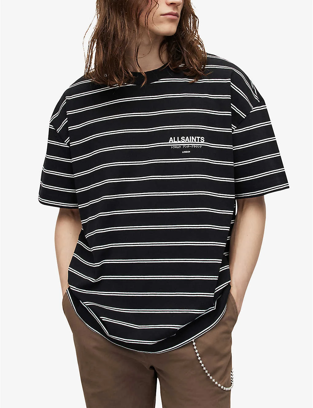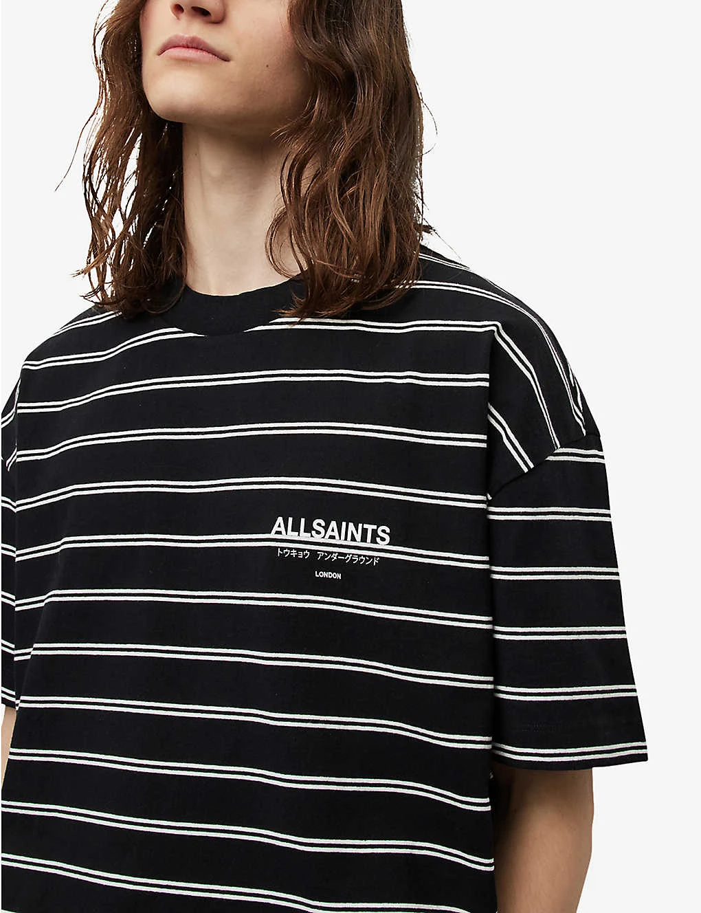 AllSaints Underground Striped Over-sized Organic-cotton T-shirt