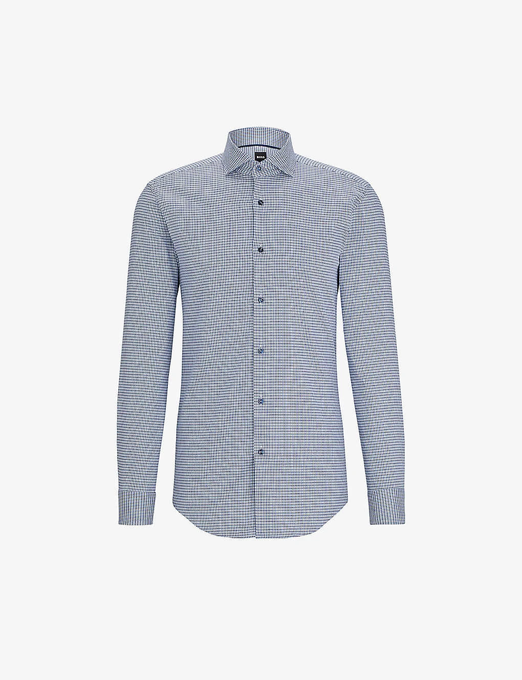 - Slim fit, pointed collar, long sleeves, button cuffs, all-over check print