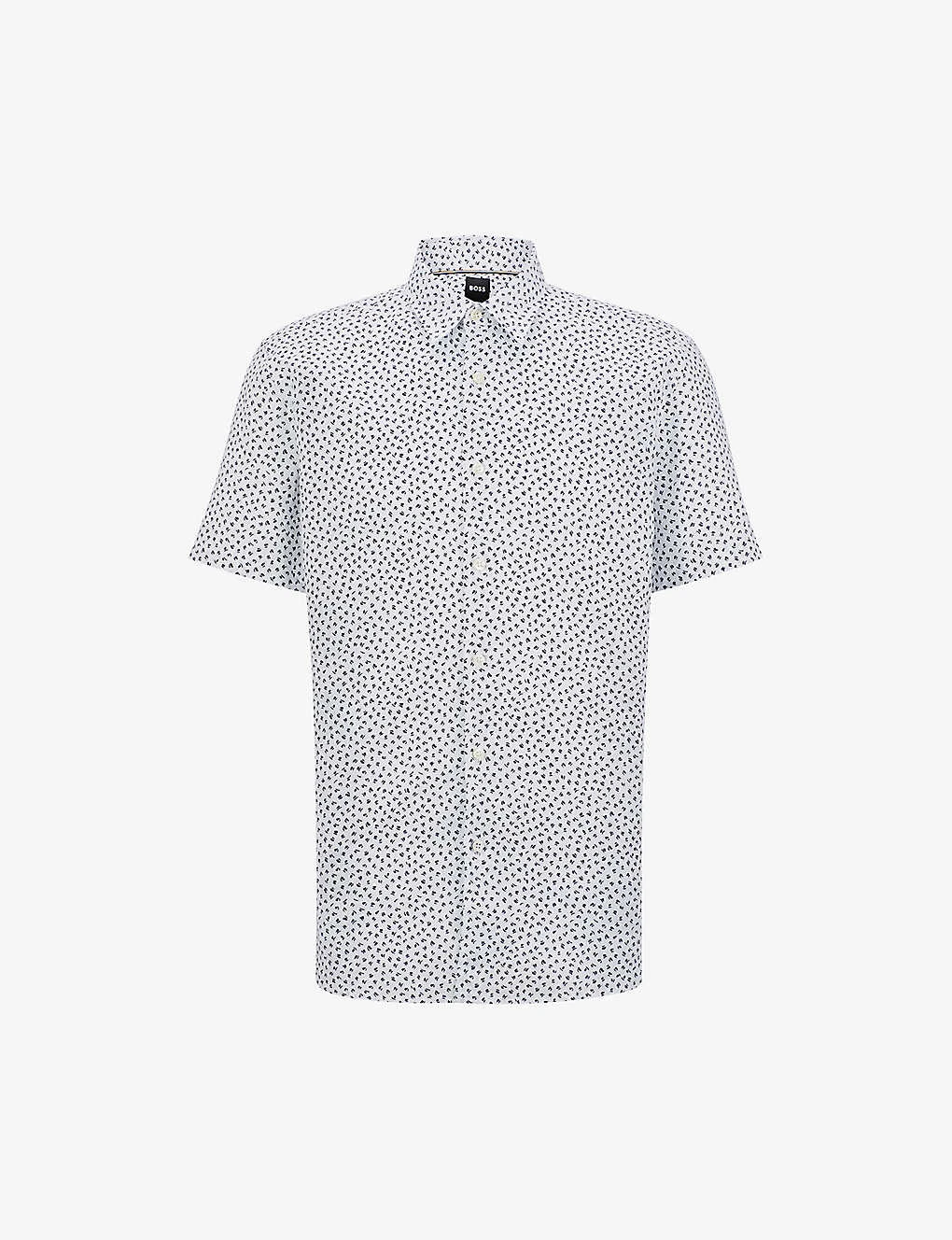 Boss Graphic-print Regular-fit Stretch-linen Shirt