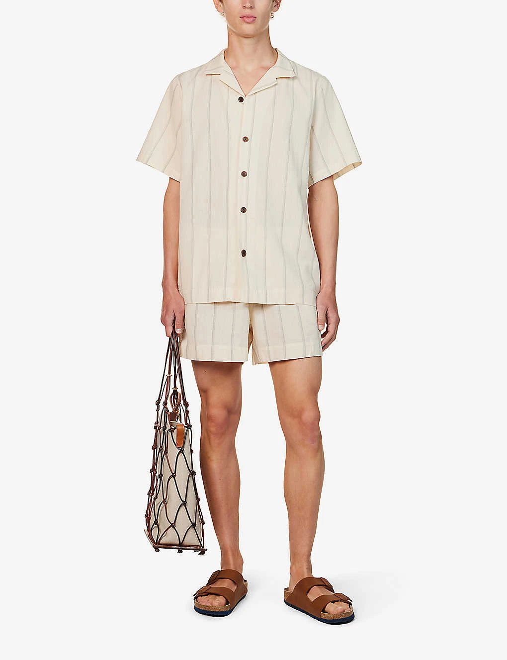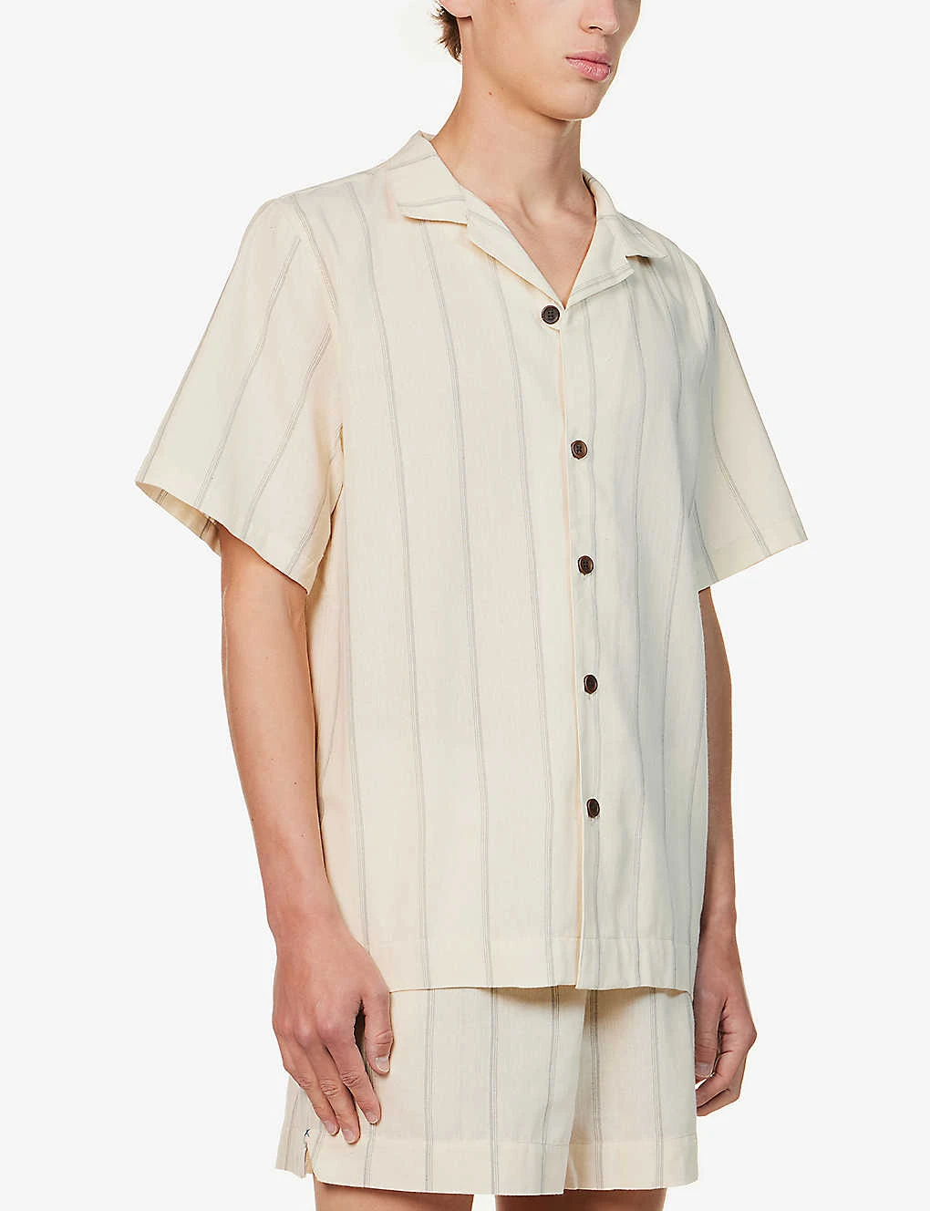Camp-collar Short-sleeved Boxy-fit Cotton And Silk-blend Shirt