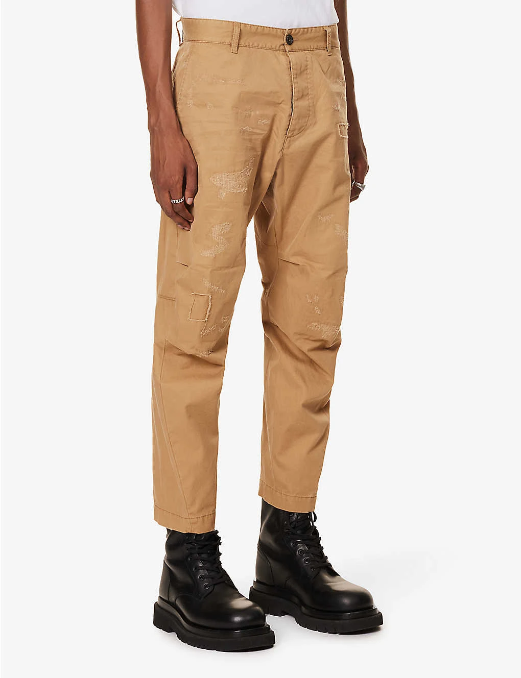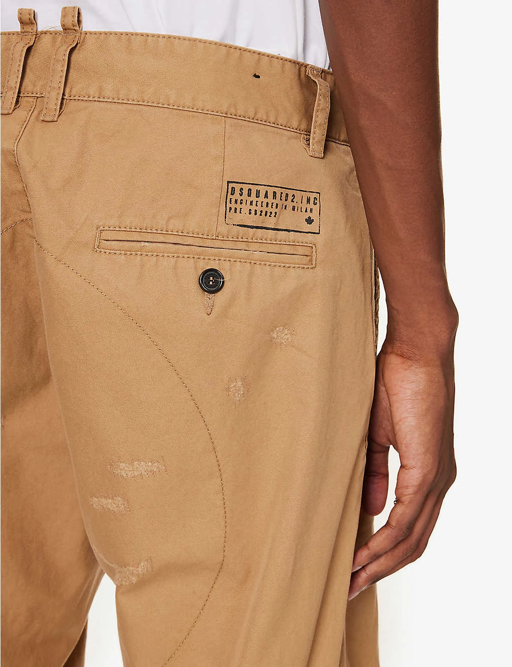 DSQUARED2 Distressed Tapered-leg Cotton-twill Trousers