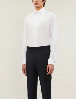 - Contemporary fit, collar, long sleeves, all-over floral print, buttoned cuffs