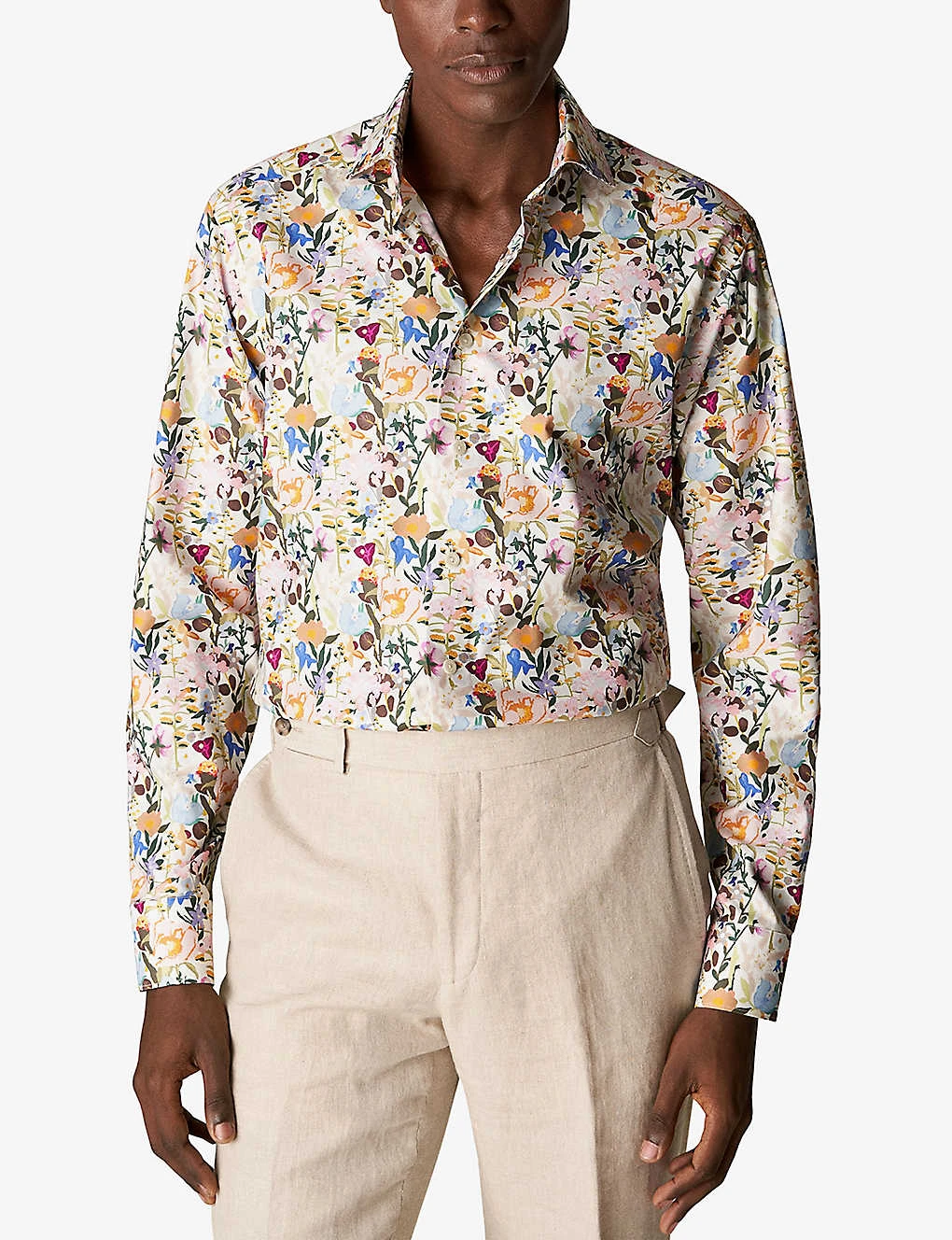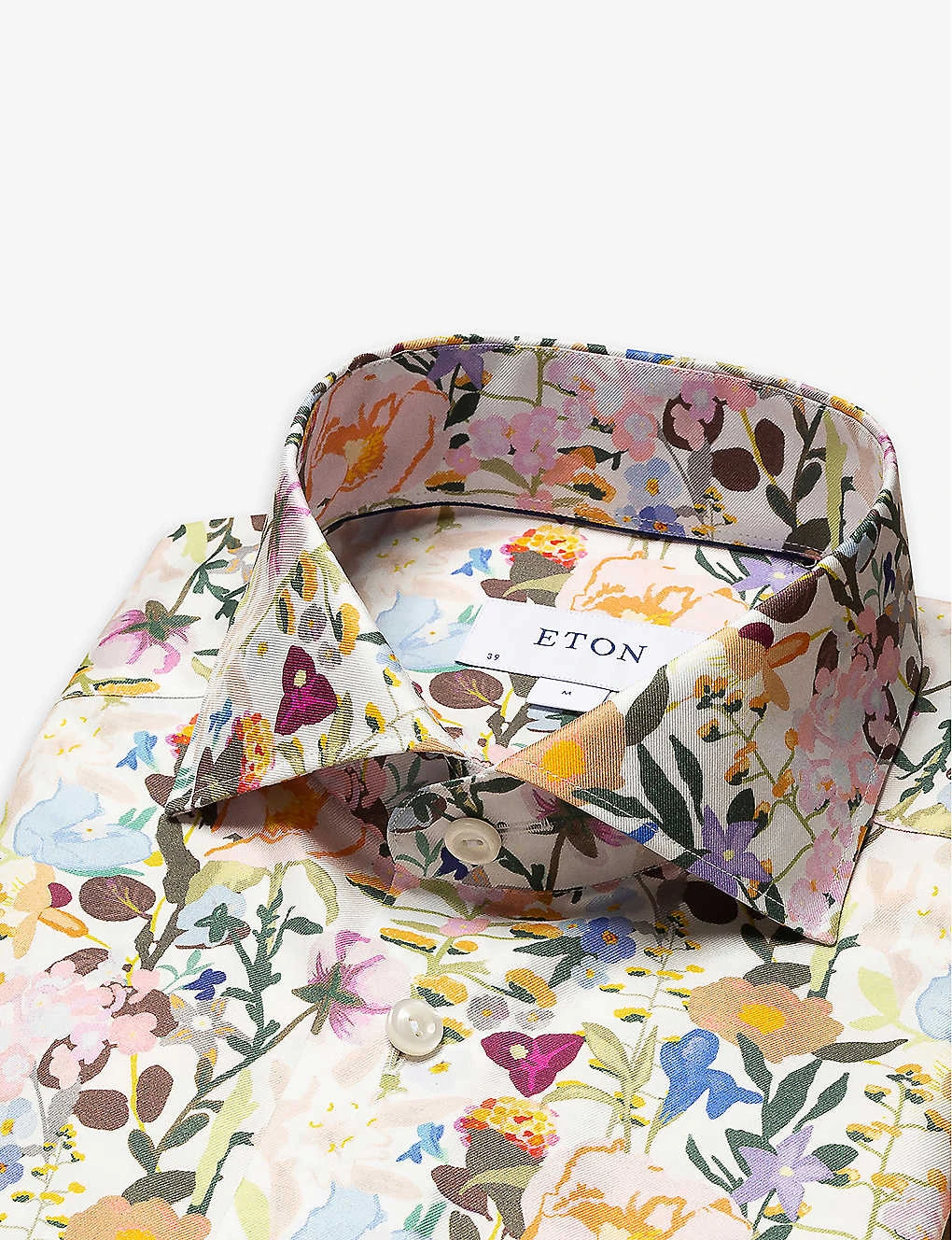 ETON Floral-print Contemporary-fit Cotton Shirt