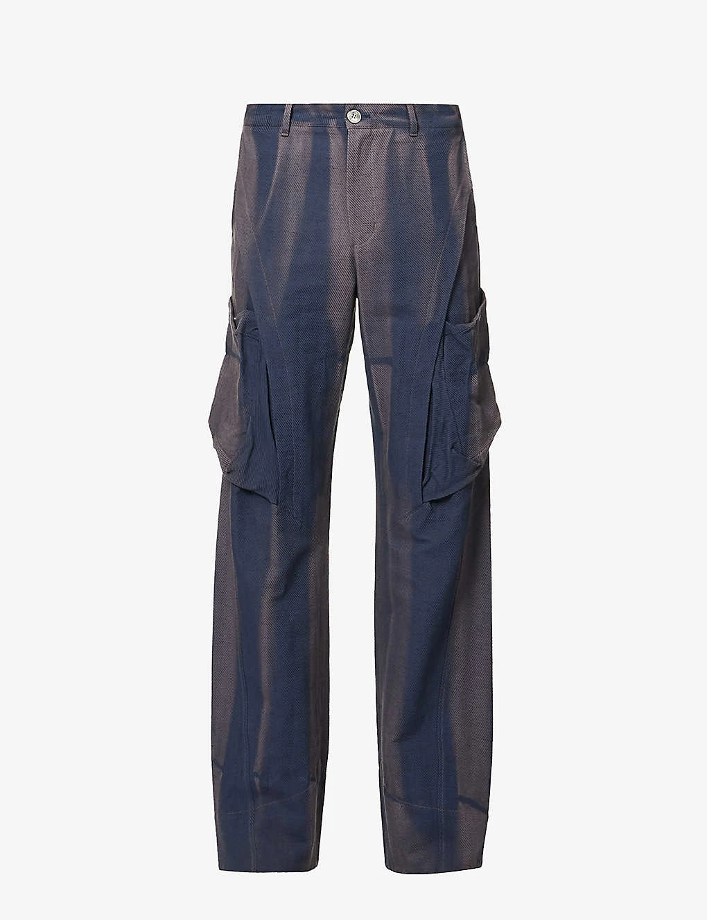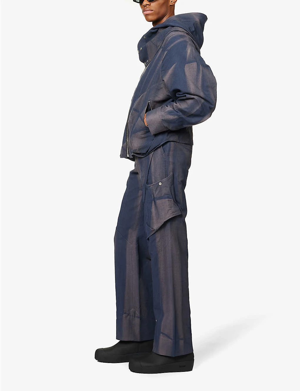 - Regular fit, dropped crotch, wide leg, belt loops, two slip pockets at front, patch pockets at front with popper fastenings at front, two welt pockets at back