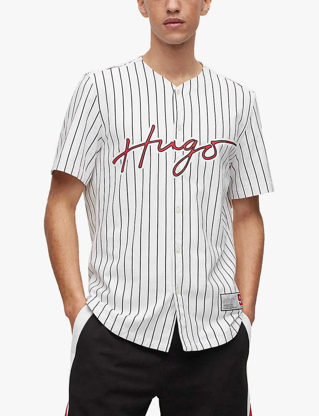 Be the first to review “Hugo Striped Logo-print Relaxed-fit Cotton Baseball Shirt” Cancel reply