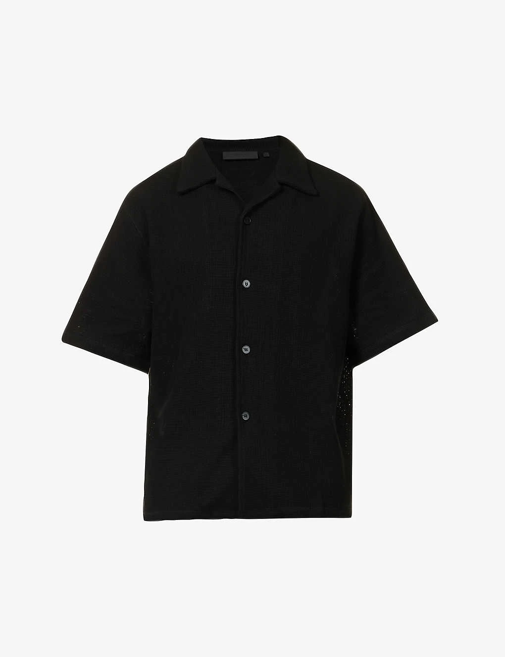 - Relaxed fit, short sleeves, all-over knitted weave, embroidered branding at back