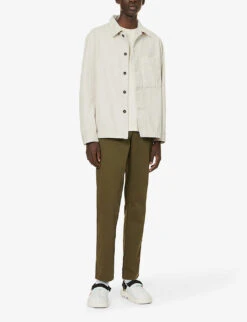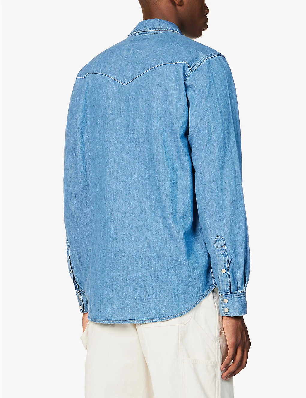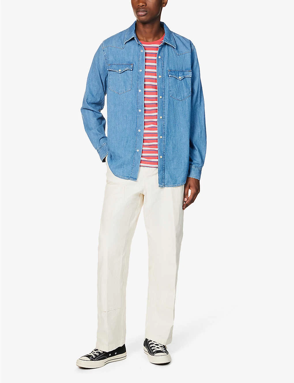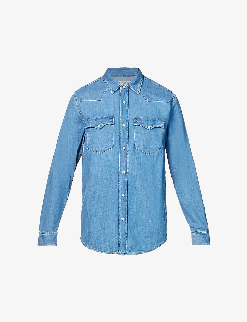 - Regular fit, long sleeves, snap fastening at cuffs, contrast stitching, two flap patch pockets at front, faded wash, curved hem