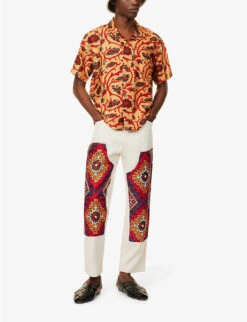 Floral-pattern Dropped-shoulder Boxy-fit Silk Shirt