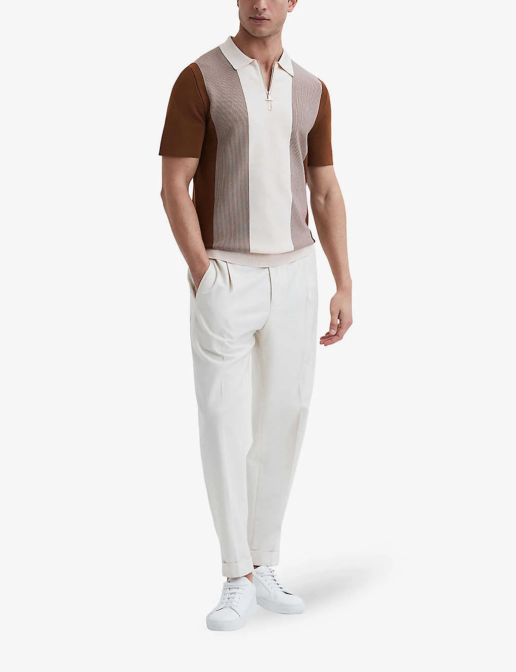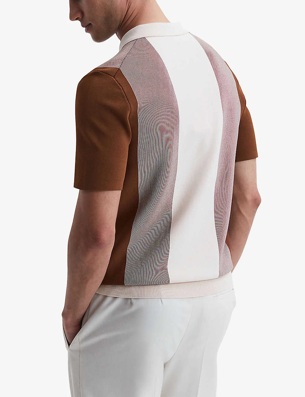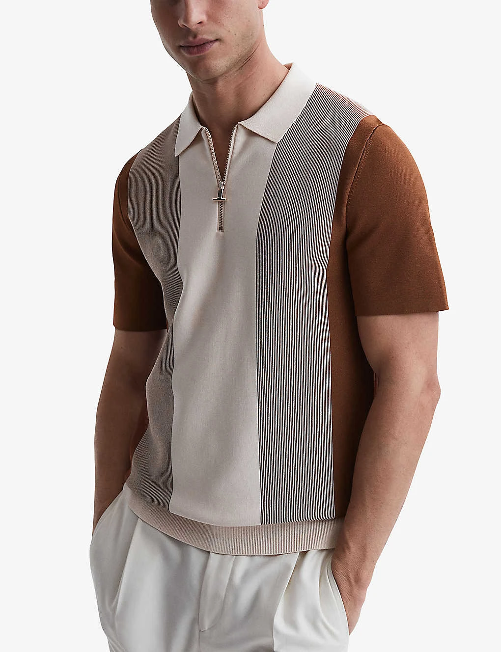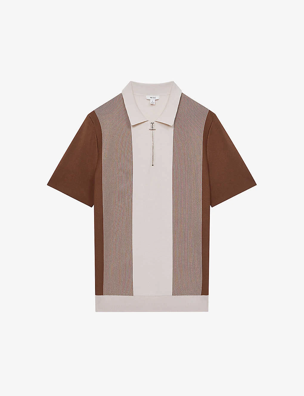 Reiss Milton Striped Zipped-collar Stretch-woven Polo Shirt
