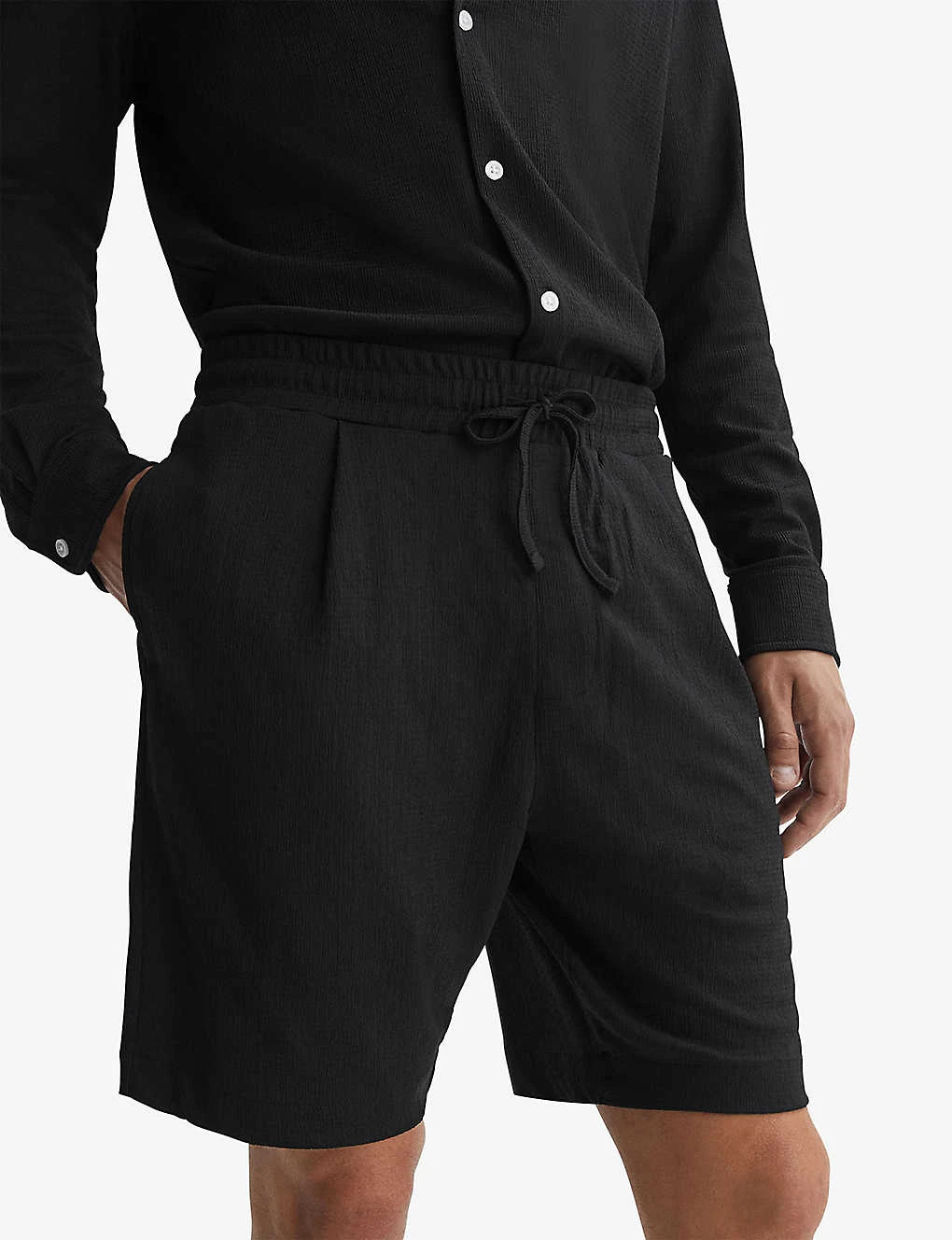 Reiss Riad Drawstring-waist Textured Stretch-woven Shorts