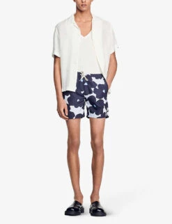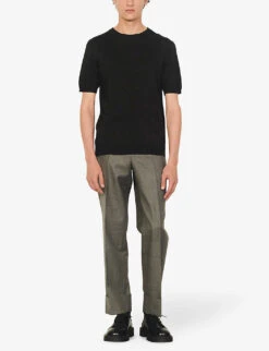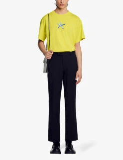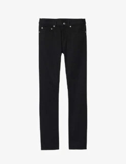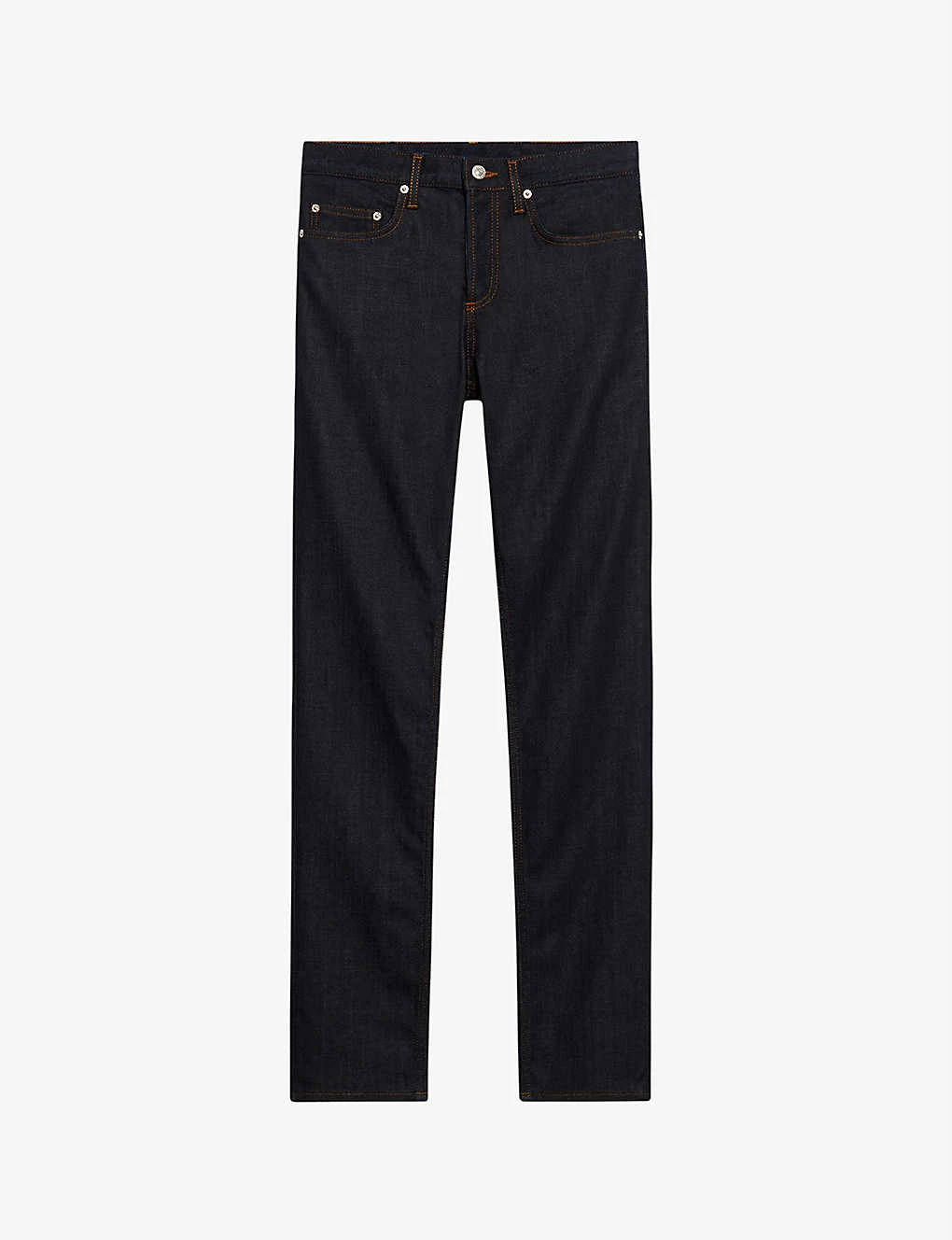 Sandro stretch-denim jeans Exposed button and concealed button-fly fastening at front Regular-fit, tapered, mid-rise, contrast stitching, belt loops, five pockets, branded silver-toned hardware, branded leather patch at back waistband, v-shaped yoke at back 99% organic cotton, 1% elastane Machine wash Size 32: Rise 10″”, inside leg 30″”, leg opening 14″” Model is 6ft and wears a size 32