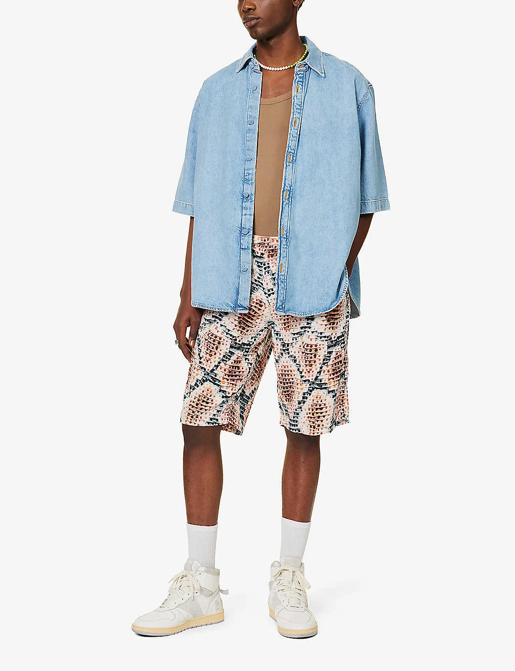 Snake Tan Graphic-print Relaxed-fit Woven Shorts