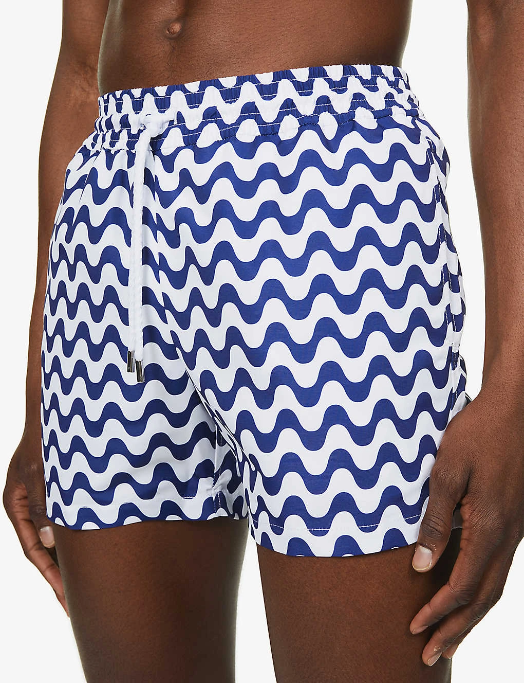 - Regular fit, mid rise, elasticated drawstring waistband, slip pockets at sides, one buttoned-jetted pocket at back, all-over wave print, fully mesh-lined