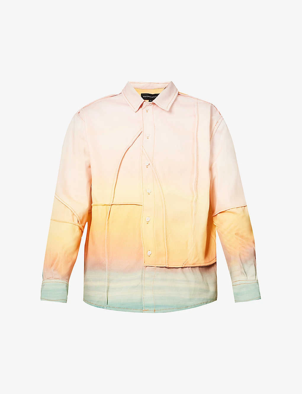 Sunset Panelled Gradient-print Oversized Denim Shirt