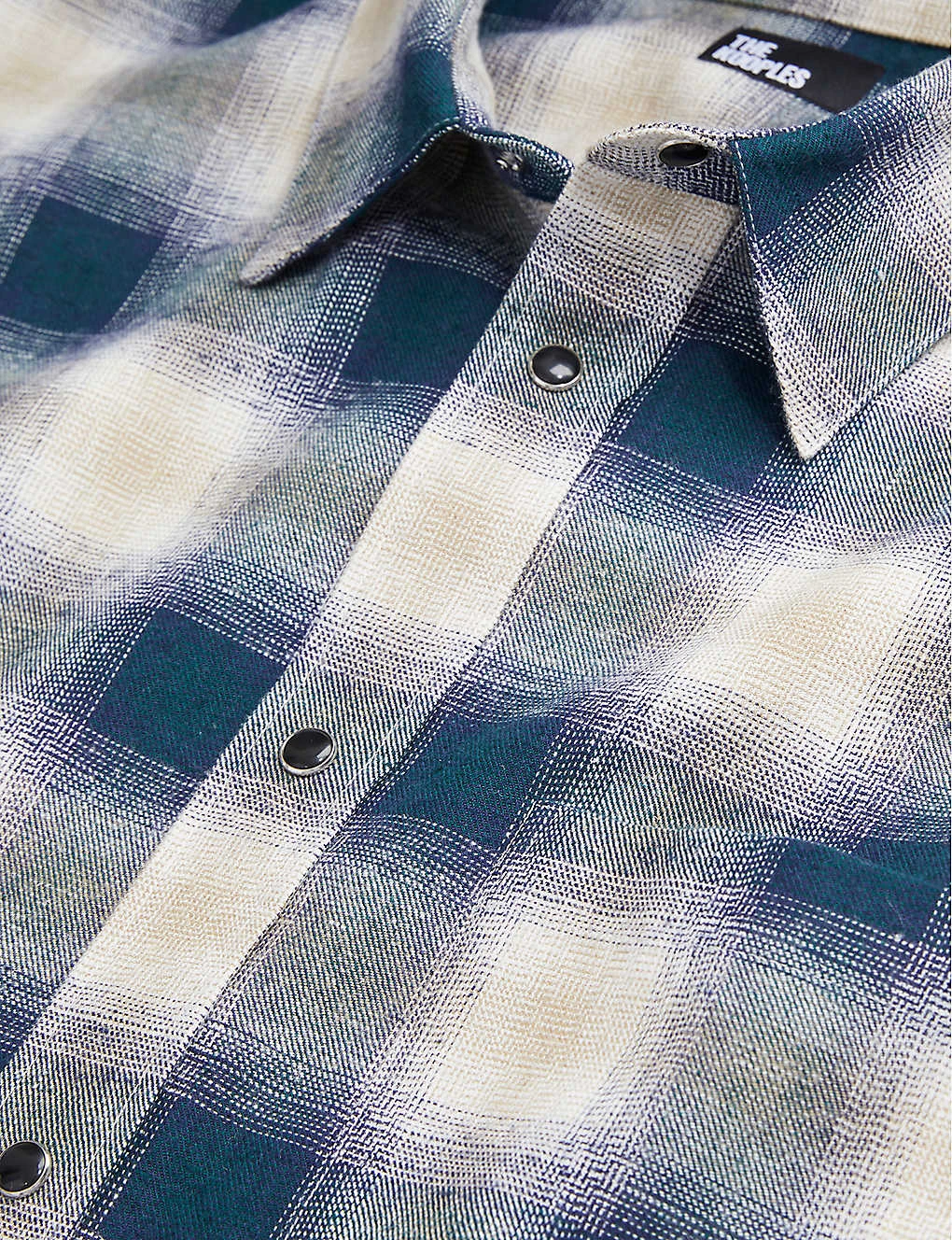 - Relaxed fit, shirt collar, long sleeves, button cuffs, all-over check pattern, straight hem