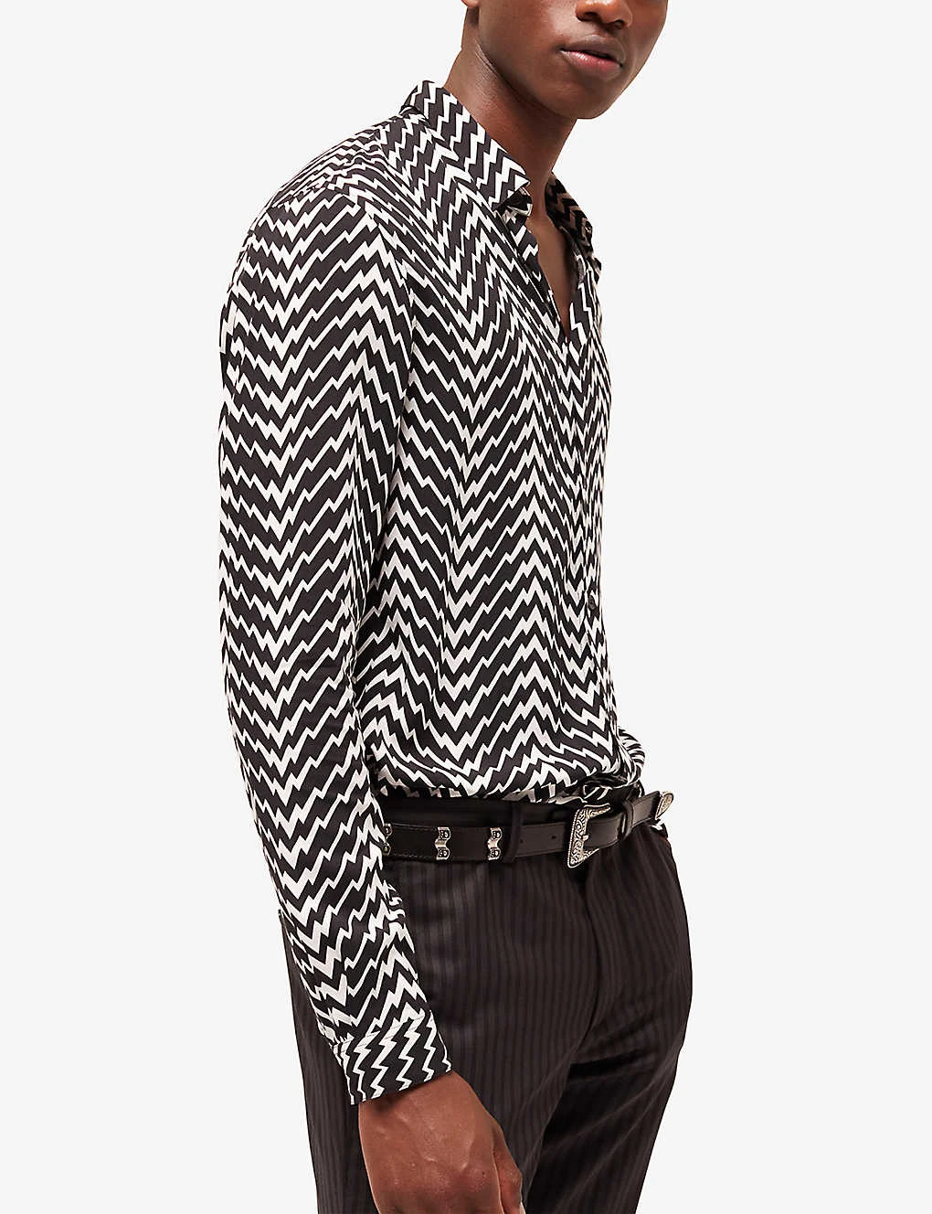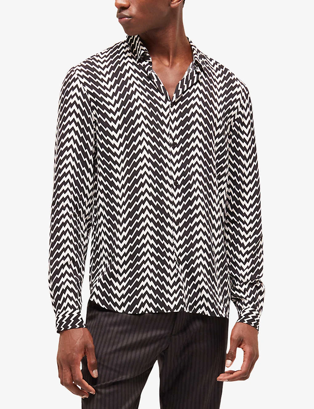 - Regular fit, long sleeves, classic collar, all-over graphic zigzag print, buttoned cuffs, curved hem