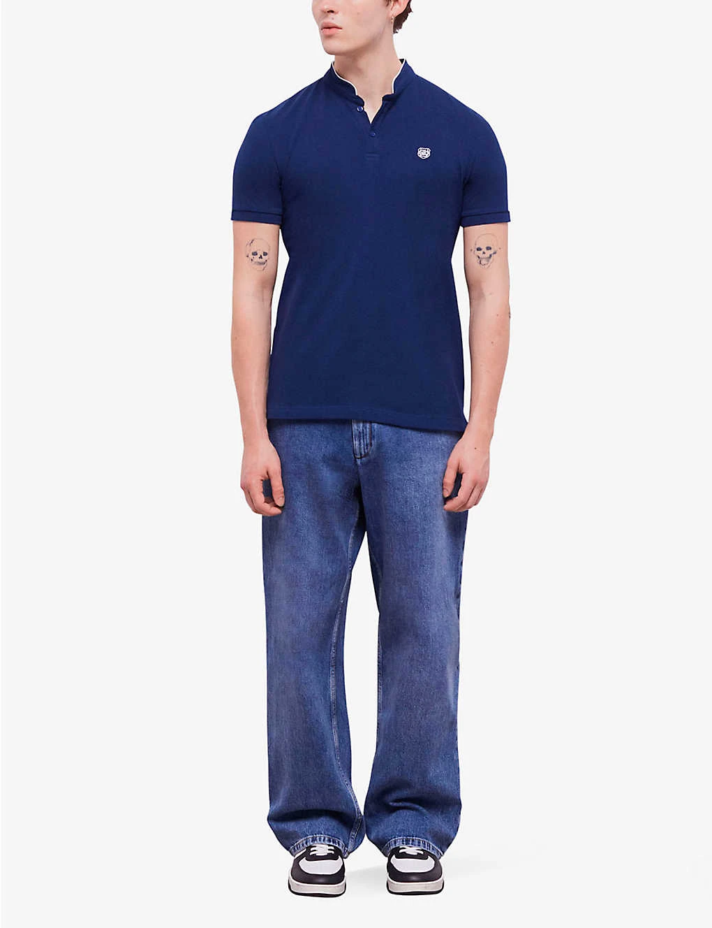 THE KOOPLES Logo-embroidered Stand-collar Cotton-piqué Polo Shirt