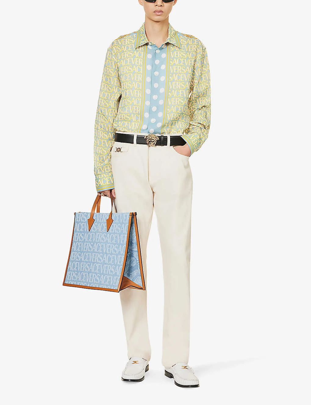 Be the first to review “Versace Brand-print Contrast-panel Regular-fit Linen Shirt” Cancel reply
