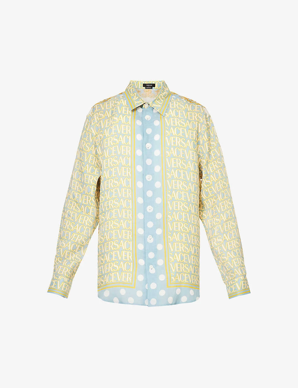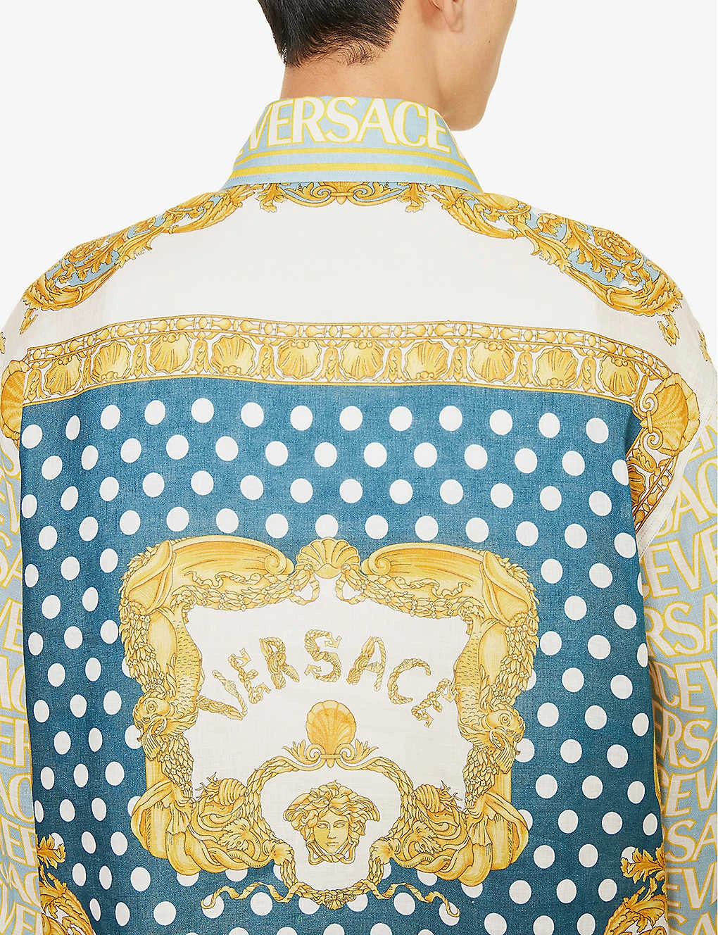 Versace Brand-print Contrast-panel Regular-fit Linen Shirt